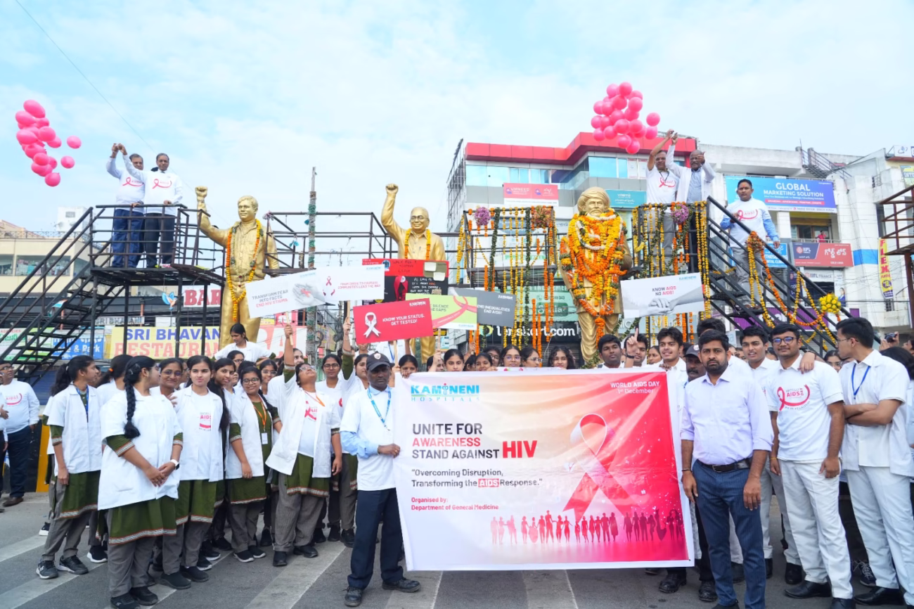 Awareness on HIV is essentialDiscrimination against affected individuals is unacceptableDr. Anuradha, Joint Director, Telangana SARC participated as chief guest24 lakh people affected in India, 1.4 lakh in TelanganaFree medicine distribution at Kamineni ART CentreKamineni Doctors said in AIDS Day Awareness WalkAIDS continues to be a