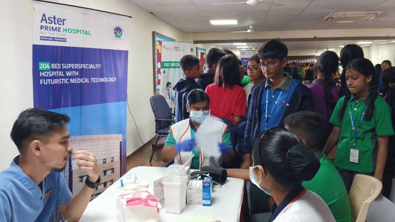 Doctors emphasized that students the future citizens of the nation must prioritize their health, as staying healthy is essential for focusing on academics. A free medical camp was organized at Meridian School, Banjara Hills, under the supervision of doctors from Aster Prime Hospital. With the